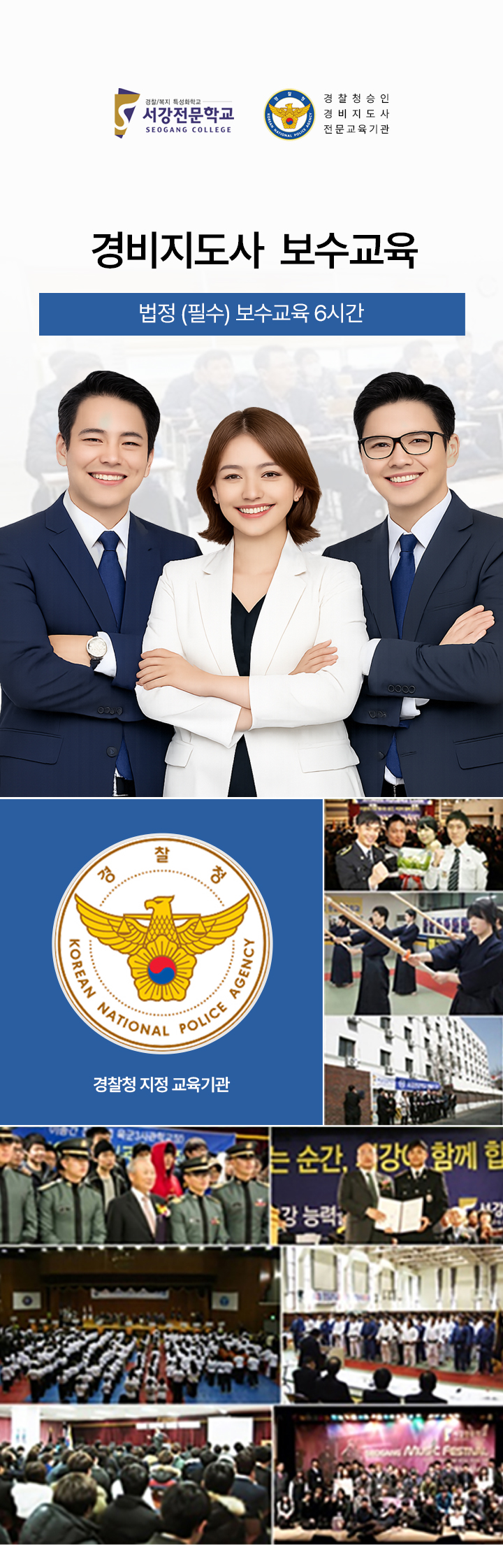 법 11조의2에 의거 선임된 경비지도사는 원활한 경비지도사 법적 직무수행에 필요하 직무역량과 전문성 강화를 위하여 법정교육인 보수교육(6시간)을 받아야 함